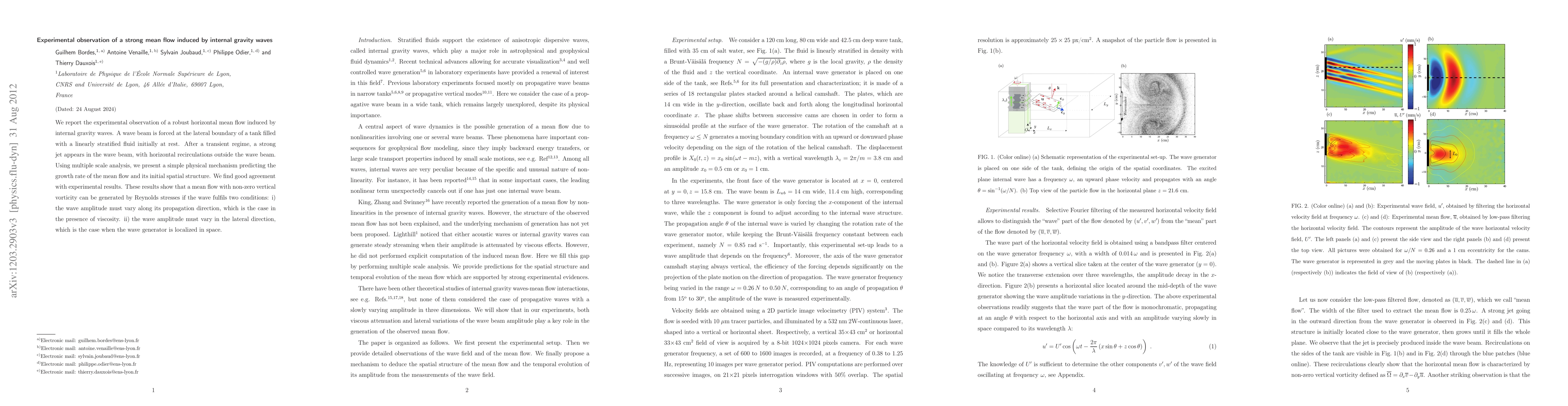 We report the experimental observation of a robust horizontal mean flow induced by internal gravity waves. A wave beam is forced at the lateral boundary of a tank filled with a linearly stratified fluid initially at rest. After a transient regime, a strong jet appears in the wave beam, with horizontal recirculations outside the wave beam. We present a simple physical mechanism predicting the growth rate of the mean flow and its initial spatial structure. We find good agreement with experimental results.