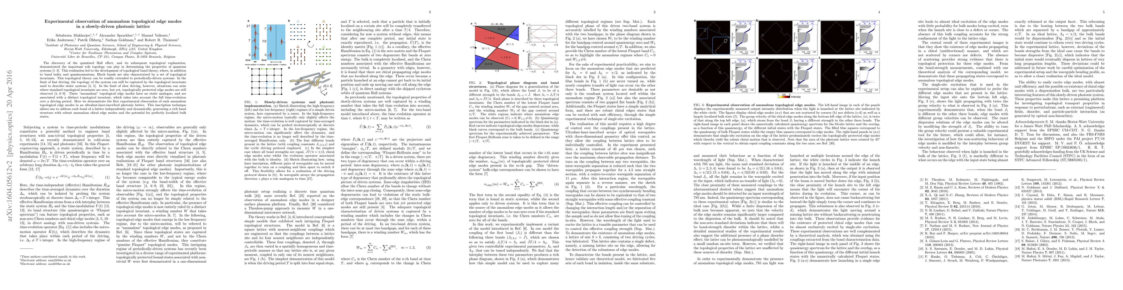 This paper reports the first experimental observation of anomalous topological edge modes in a slowly-driven photonic lattice, demonstrating topologically protected edge states that arise despite zero standard topological invariants. The ultrafast-laser inscription technique enables precise control over the lattice's band structure, revealing robust anomalous chiral edge modes.