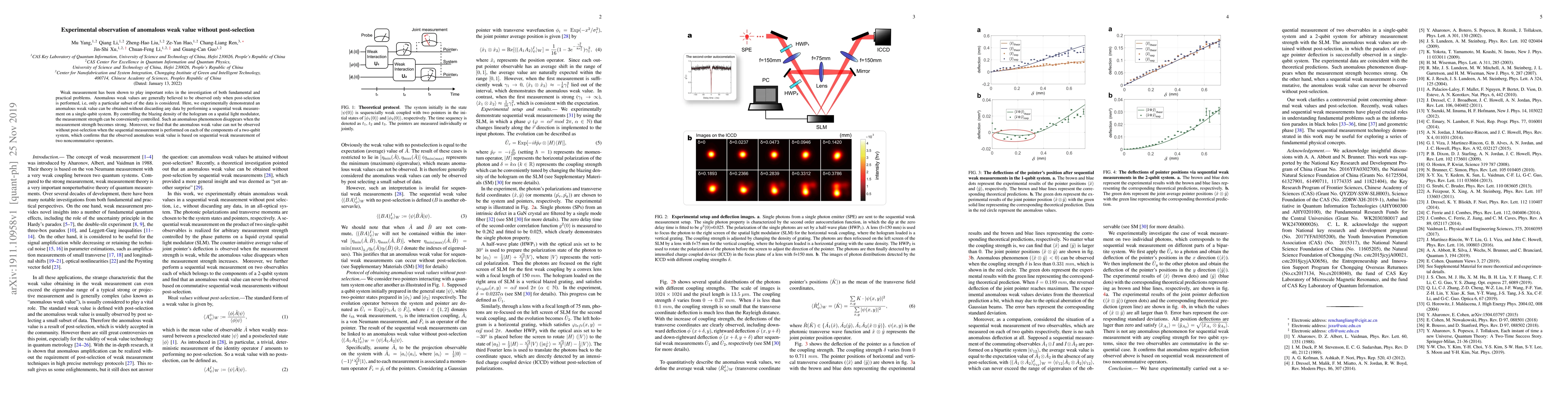 This research experimentally observes anomalous weak values without post-selection by sequentially measuring a single-qubit system, demonstrating that such anomalous effects can arise without discarding data, unlike traditional observations. The effect vanishes with stronger measurement strength and does not occur in a two-qubit system without post-selection, confirming its basis in sequential measurement of noncommutative operators.