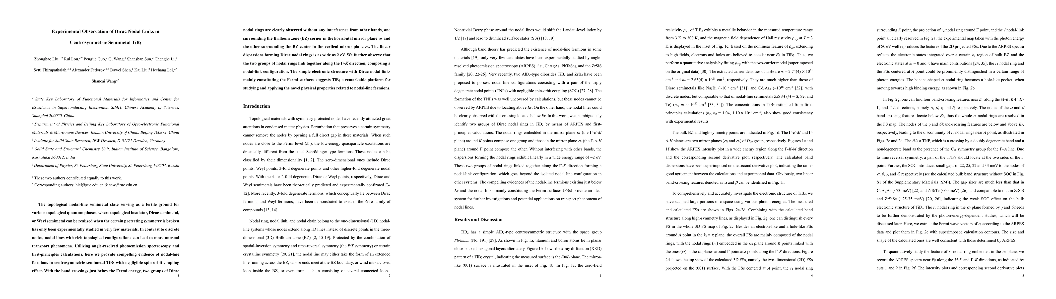 This paper reports the experimental observation of Dirac nodal links in centrosymmetric semimetal TiB$_2$ using angle-resolved photoemission spectroscopy. The study reveals two distinct groups of Dirac nodal rings with significant linear dispersions, forming a nodal-link configuration that could enable novel physical phenomena.