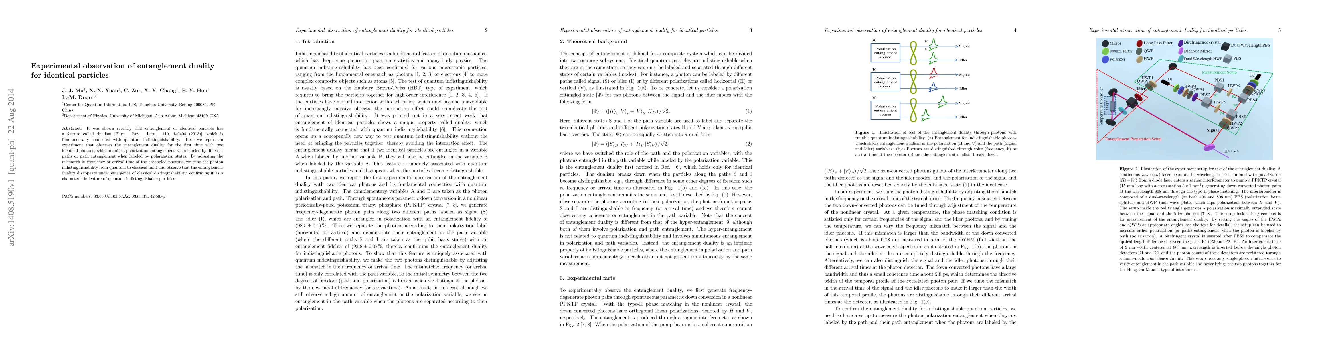 This paper reports the first experimental observation of entanglement duality in identical photons, demonstrating how polarization and path entanglement can switch based on labeling. The study shows that entanglement duality vanishes as quantum indistinguishability transitions to classical distinguishability, confirming its quantum nature.