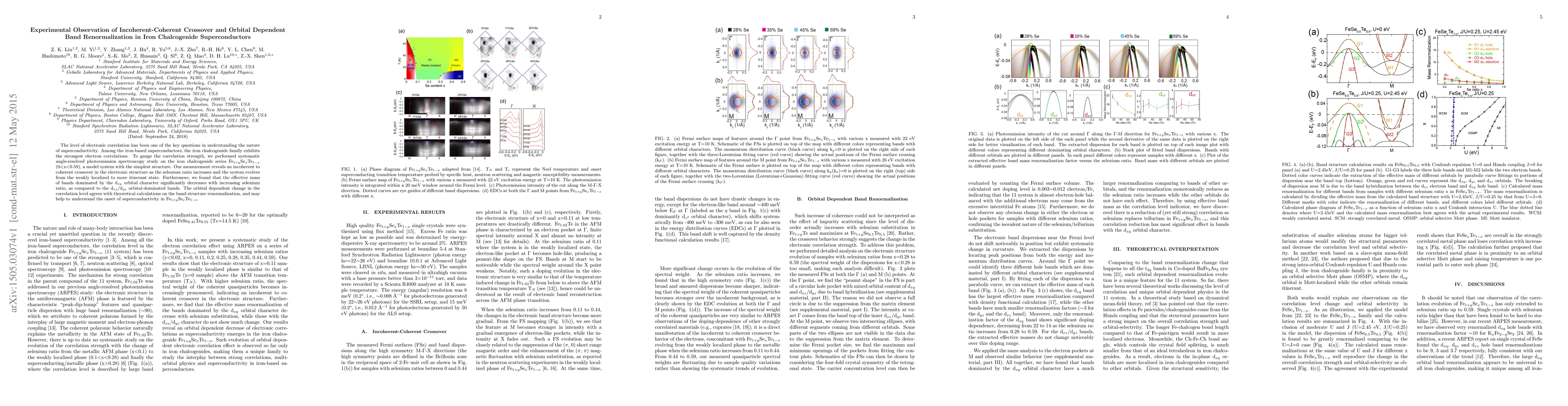 This study uses angle-resolved photoemission spectroscopy to observe the transition from incoherent to coherent electronic states in iron chalcogenide superconductors, Fe$_{1+y}$Se$_x$Te$_{1-x}$. The research highlights orbital-dependent band renormalization, with d$_{xy}$ orbital-dominated bands showing significant mass reduction, suggesting a deeper understanding of superconductivity onset.