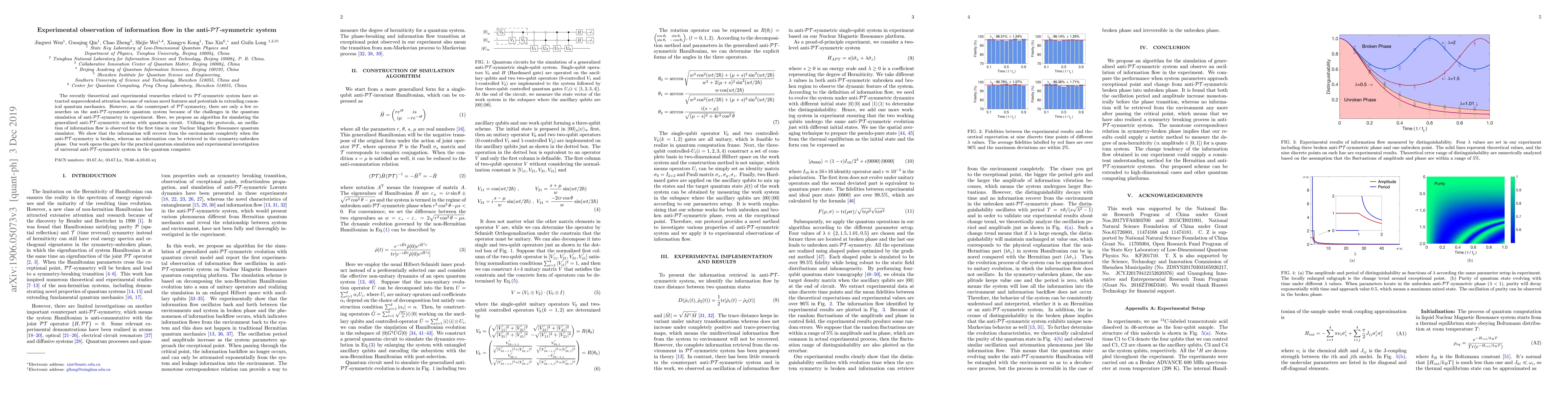 The recently theoretical and experimental researches related to $\mathcal{PT}$-symmetric system have attracted unprecedented attention because of various novel features and potentials in extending canonical quantum mechanics. However, as the counterpart of $\mathcal{PT}$-symmetry, there are only a few researches on anti-$\mathcal{PT}$-symmetry. Here, we propose an algorithm for simulating the universal anti-$\mathcal{PT}$-symmetric system with quantum circuit. Utilizing the protocols, an oscillation of information flow is observed for the first time in our Nuclear Magnetic Resonance quantum simulator. We will show that information will recover from the environment completely when the anti-$\mathcal{PT}$-symmetry is broken, whereas no information can be retrieved in the symmetry-unbroken phase. Our work opens the gate for practical quantum simulation and experimental investigation of universal anti-$\mathcal{PT}$-symmetric system in quantum computer.