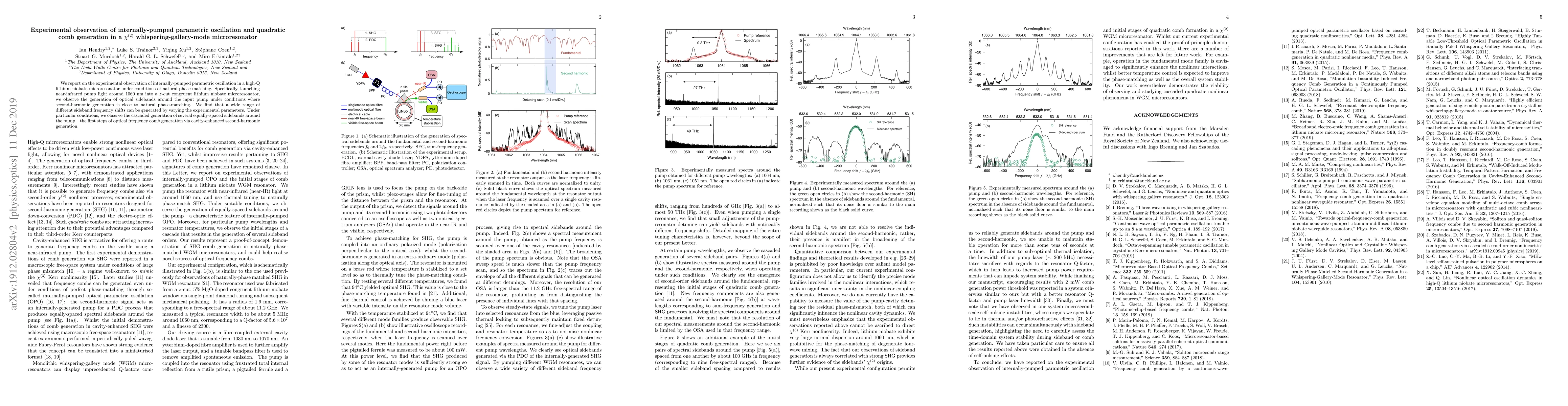 This paper reports on the experimental observation of internally-pumped parametric oscillation in a high-Q lithium niobate microresonator, leading to the generation of optical sidebands. Under specific conditions, it demonstrates the cascaded generation of several equally-spaced sidebands, marking the initial steps of optical frequency comb formation via enhanced second-harmonic generation.