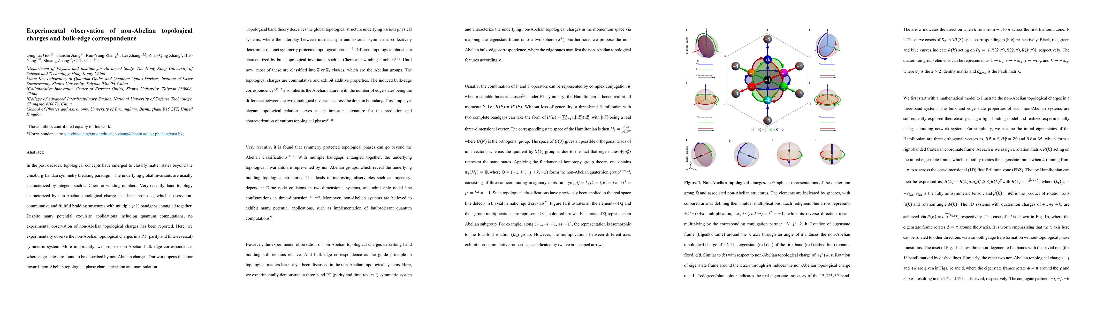 This paper reports the first experimental observation of non-Abelian topological charges in a PT-symmetric system, demonstrating their unique braiding properties and proposing a non-Abelian bulk-edge correspondence. This breakthrough paves the way for characterizing and manipulating non-Abelian topological phases.