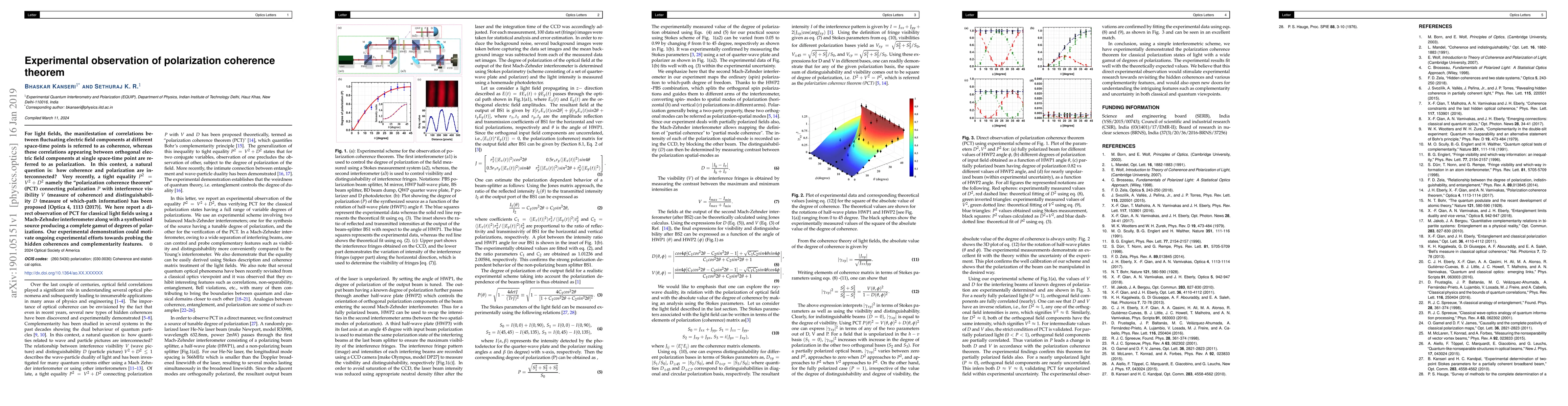 Researchers directly observed the polarization coherence theorem for classical light fields using a Mach-Zehnder interferometer, demonstrating a connection between polarization and interference visibility.
