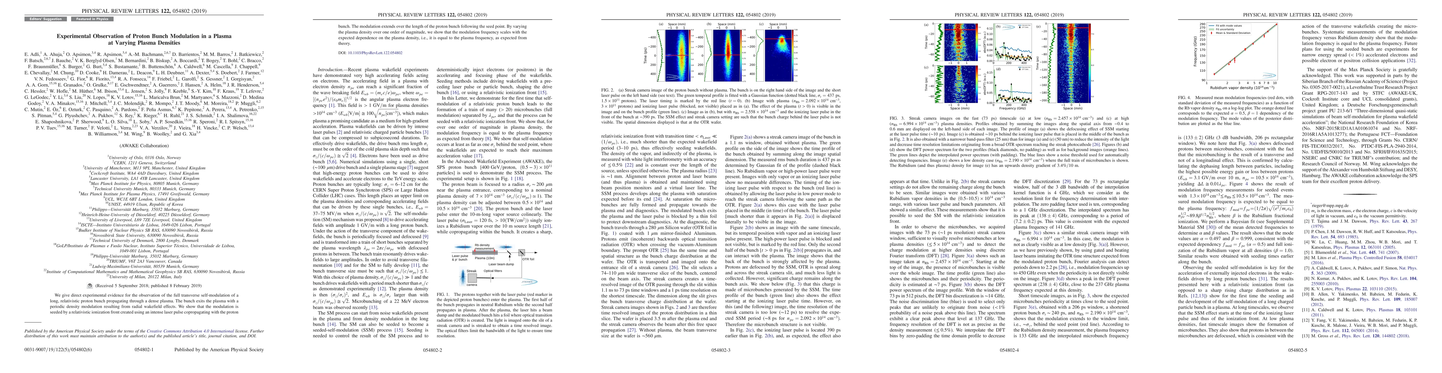This paper presents experimental evidence for the transverse self-modulation of a relativistic proton bunch in a dense plasma, showing that the modulation period is inversely proportional to the plasma frequency. The modulation is initiated by an intense laser pulse creating a relativistic ionization front, and the modulation period scales predictably with varying plasma densities.