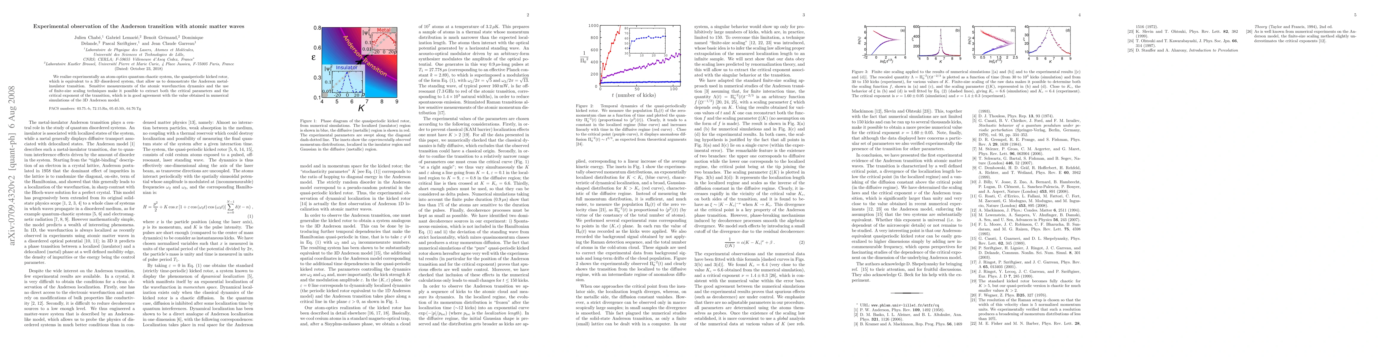 The study experimentally observes the Anderson transition in a quantum chaotic atom-optics system, revealing critical parameters and exponents consistent with numerical simulations of the 3D Anderson model. The experiment uses atomic matter waves and finite-size scaling techniques for precise measurements.