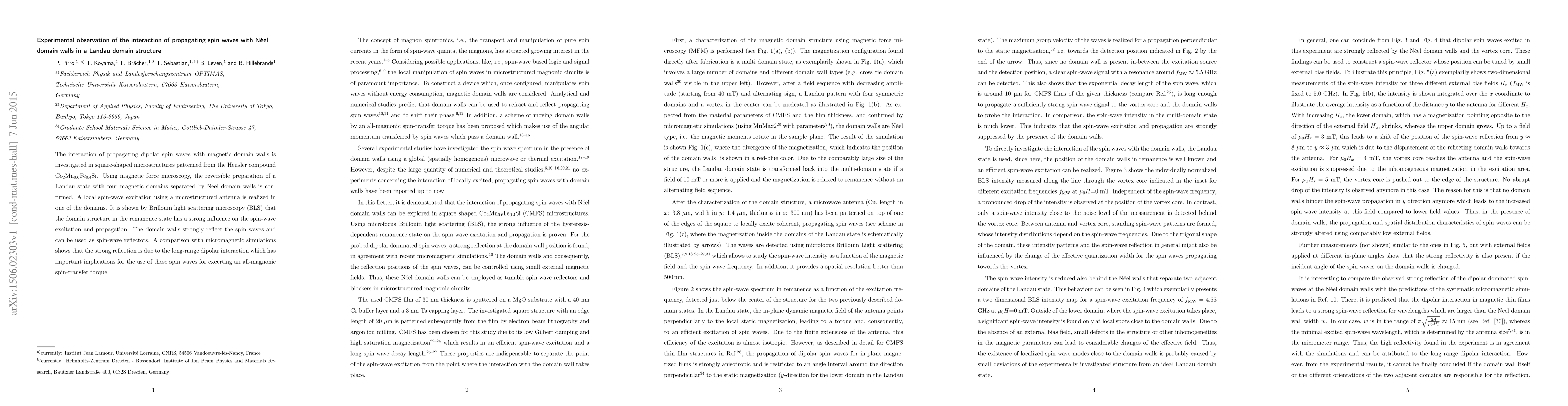 This study investigates how dipolar spin waves interact with N\'eel domain walls in a Landau domain structure using magnetic force microscopy and Brillouin light scattering microscopy. The results show that domain walls reflect spin waves due to long-range dipolar interactions, which has significant implications for all-magnonic spin-transfer torque applications.