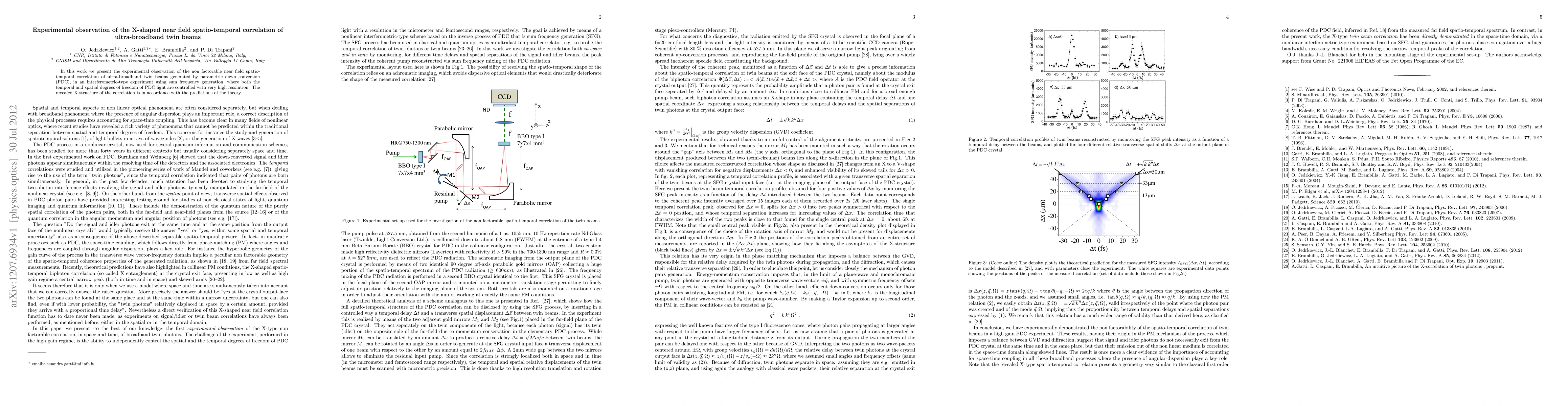 This paper reports the experimental observation of the non-factorable spatio-temporal correlation of ultra-broadband twin beams generated via parametric down conversion, revealing an X-shaped near field correlation structure consistent with theoretical predictions. The study employs an interferometric setup with sum frequency generation for high-resolution control of temporal and spatial degrees of freedom.