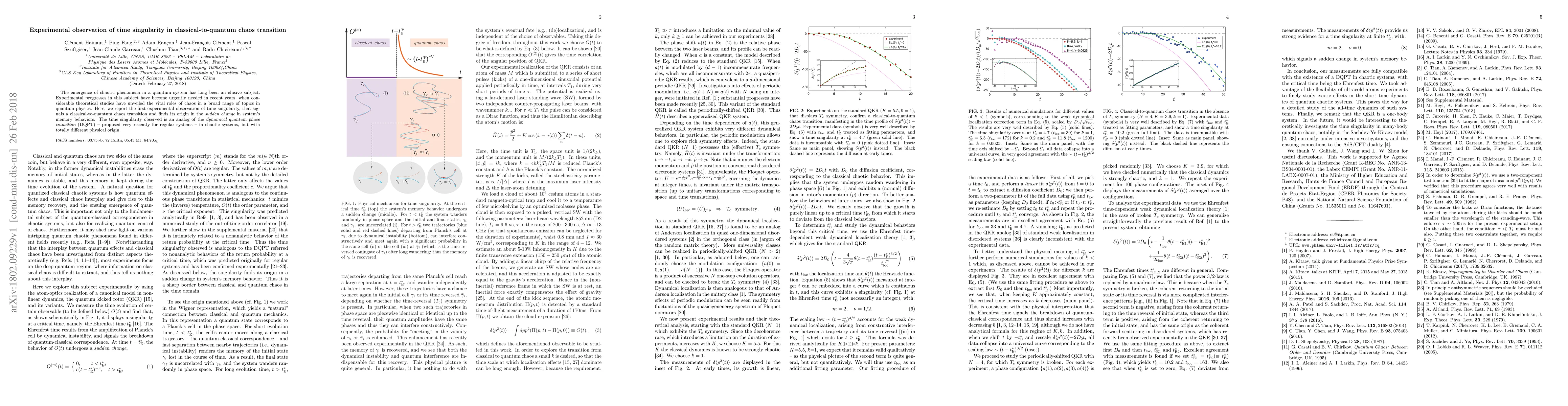This paper reports the first experimental observation of a time singularity signaling a classical-to-quantum chaos transition, revealing a sudden change in the system's memory behaviors. This observation differs from the "dynamical quantum phase transition" in regular systems, highlighting a unique physical origin in chaotic systems.