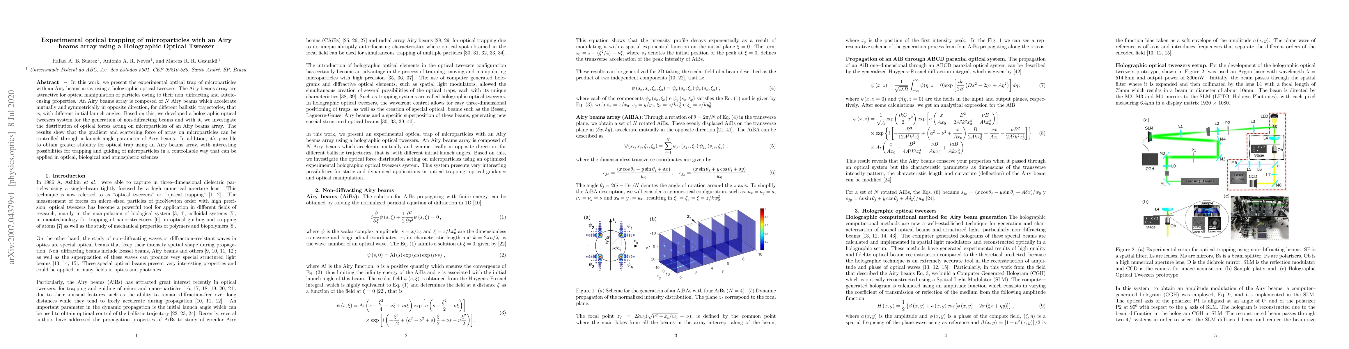 This paper demonstrates the experimental trapping of microparticles using an Airy beams array generated by a holographic optical tweezer, exploiting the beams' non-diffracting and autofocusing properties. The study reveals controllable optical forces on microparticles via the launch angle, highlighting potential applications in optical, biological, and atmospheric sciences for stable and guided microparticle manipulation.