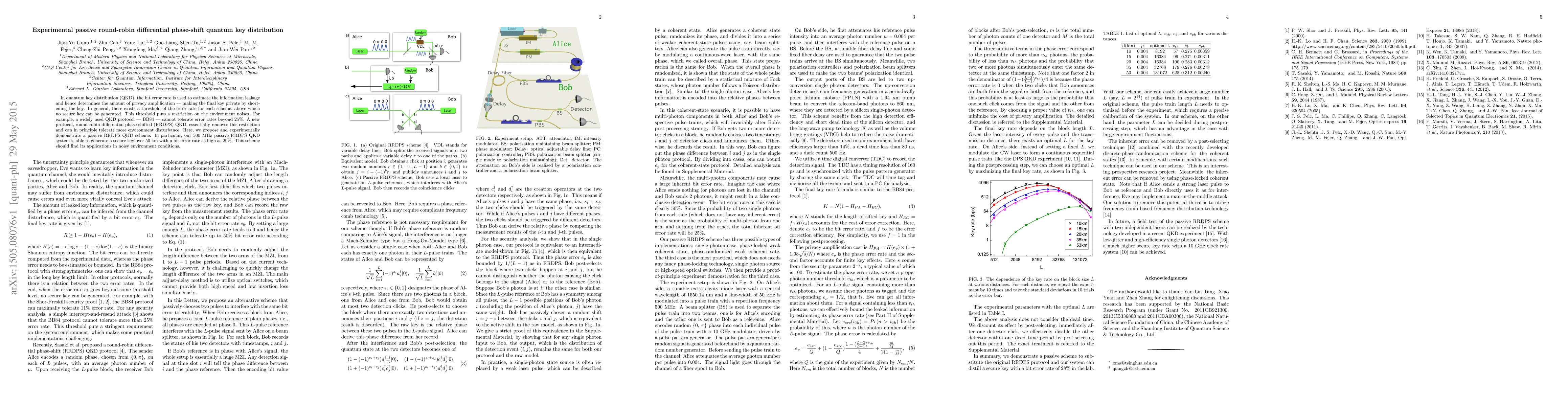 This paper proposes and experimentally demonstrates a passive round-robin differential phase-shift quantum key distribution (RRDPS QKD) protocol that can generate secure keys over long distances with high error rates, surpassing the limitations of traditional protocols like BB84. The 500 MHz passive RRDPS QKD system successfully creates a secure key over 50 km with a bit error rate of 29%.