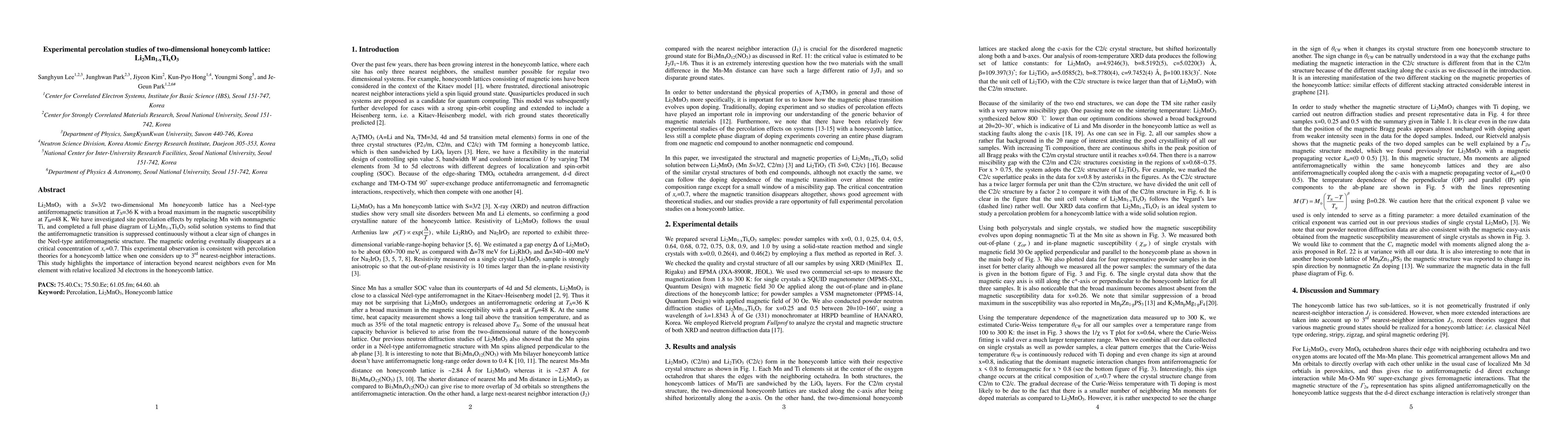 Li2MnO3 with a S=3/2 two-dimensional Mn honeycomb lattice has a Neel-type antiferromagnetic transition at TN=36 K with a broad maximum in the magnetic susceptibility at TM=48 K. We have investigated site percolation effects by replacing Mn with nonmagnetic Ti, and completed a full phase diagram of Li2Mn1-xTixO3 solid solution systems to find that the antiferromagnetic transition is suppressed continuously without a clear sign of changes in the Neel-type antiferromagnetic structure. The magnetic ordering eventually disappears at a critical concentration of xc=0.7. This experimental observation is consistent with percolation theories for a honeycomb lattice when one considers up to 3rd nearest-neighbor interactions. This study highlights the importance of interaction beyond nearest neighbors even for Mn element with relative localized 3d electrons in the honeycomb lattice.