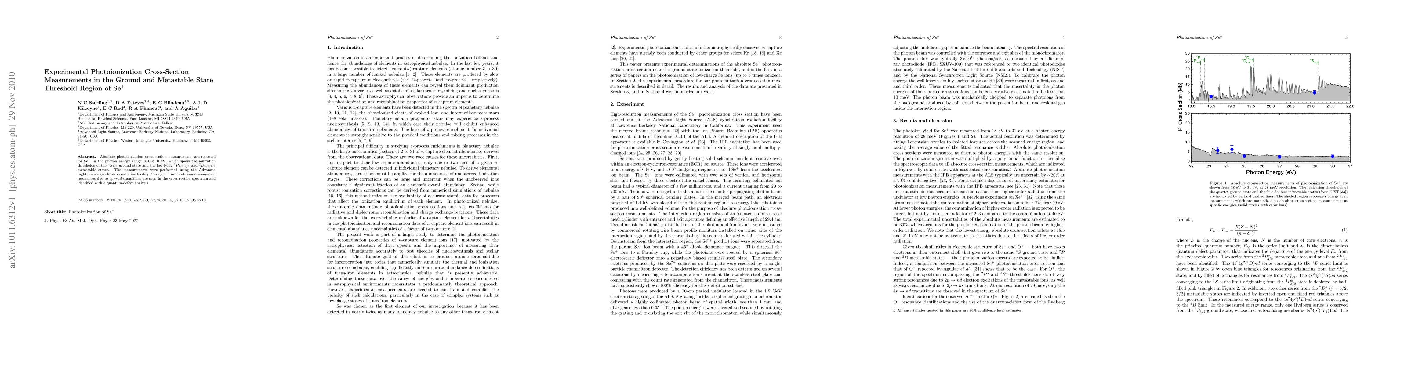 Absolute photoionization cross-section measurements are reported for Se+ in the photon energy range 18.0-31.0 eV, which spans the ionization thresholds of the 4S_{3/2} ground state and the low-lying 2P_{3/2,1/2} and 2D_{5/2,3/2} metastable states. The measurements were performed using the Advanced Light Source synchrotron radiation facility. Strong photoexcitation-autoionization resonances due to 4p-->nd transitions are seen in the cross-section spectrum and identified with a quantum-defect analysis.