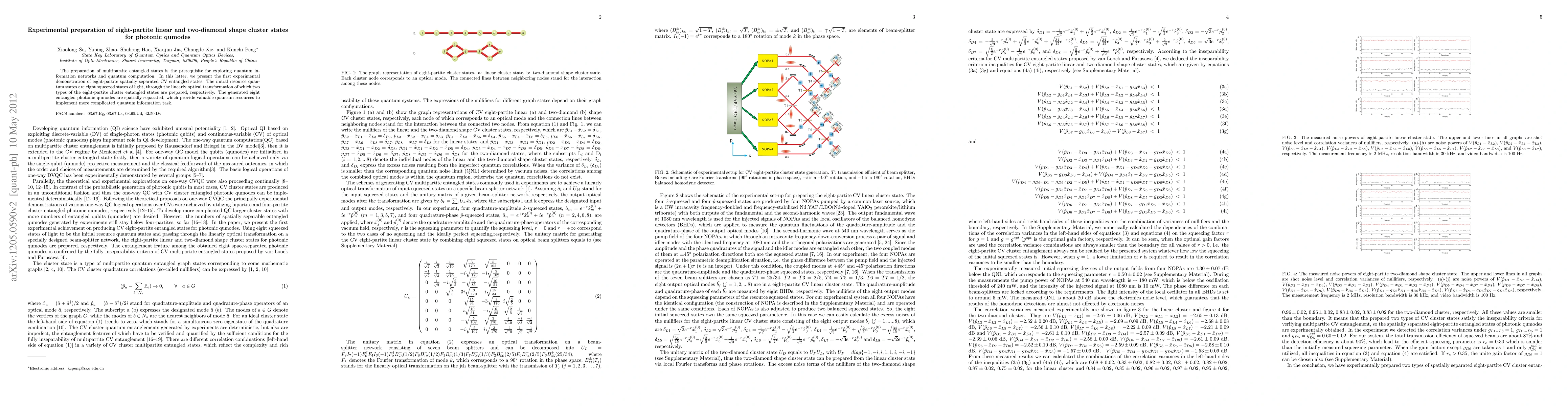 This paper demonstrates the first experimental preparation of eight-partite cluster entangled states for photonic qumodes, using squeezed light and linear optical transformations. These spatially separated entangled states are crucial resources for advanced quantum information networks and computation.