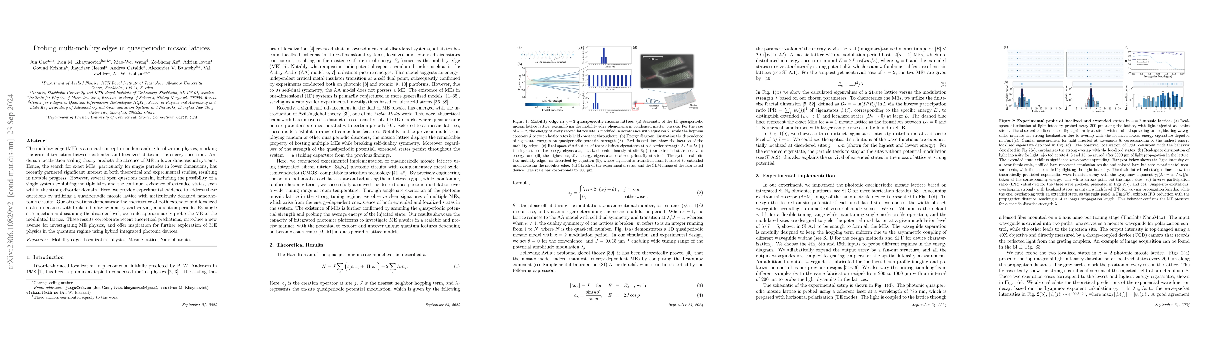 This paper experimentally investigates the presence of multiple mobility edges in quasiperiodic mosaic lattices, demonstrating coexistence of extended and localized states. The study uses nanophotonic circuits to probe these transitions, supporting theoretical predictions and suggesting new research directions in quantum regime exploration.