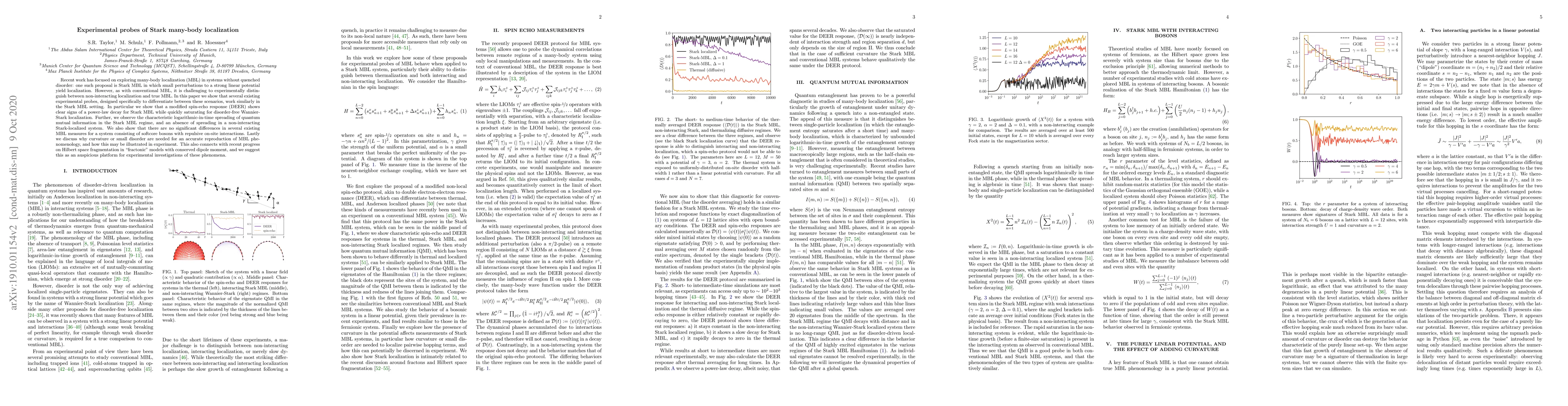 This paper explores experimental probes for Stark many-body localization (MBL) in systems without quenched disorder, demonstrating that modified spin-echo response (DEER) and quantum mutual information spreading can distinguish true MBL from non-interacting localization. It also highlights the necessity of curvature or small disorder for accurate MBL phenomenology.