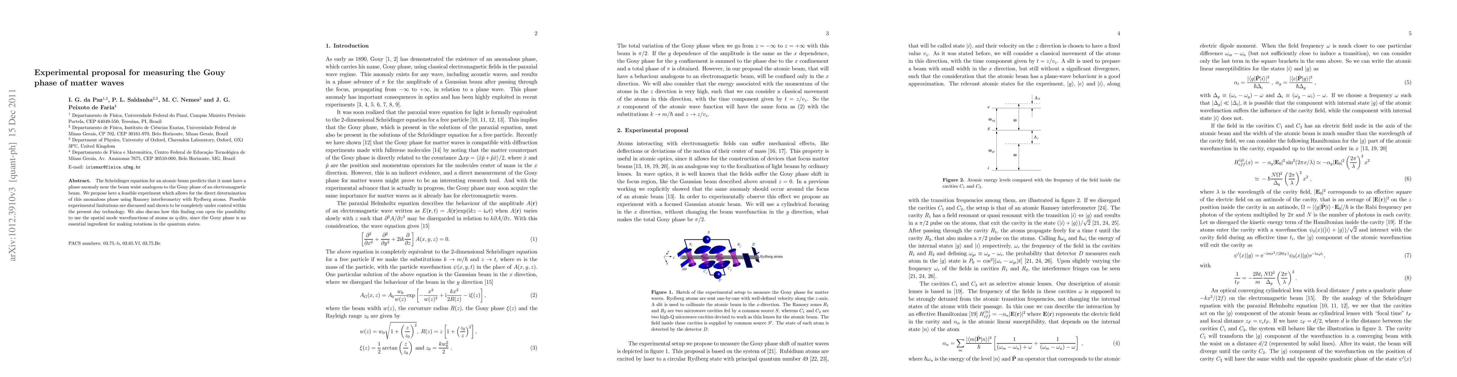This paper proposes an experiment using Ramsey interferometry with Rydberg atoms to measure the Gouy phase anomaly in atomic beams, analogous to the Gouy phase in electromagnetic beams, and discusses the feasibility and potential applications in quantum information processing.