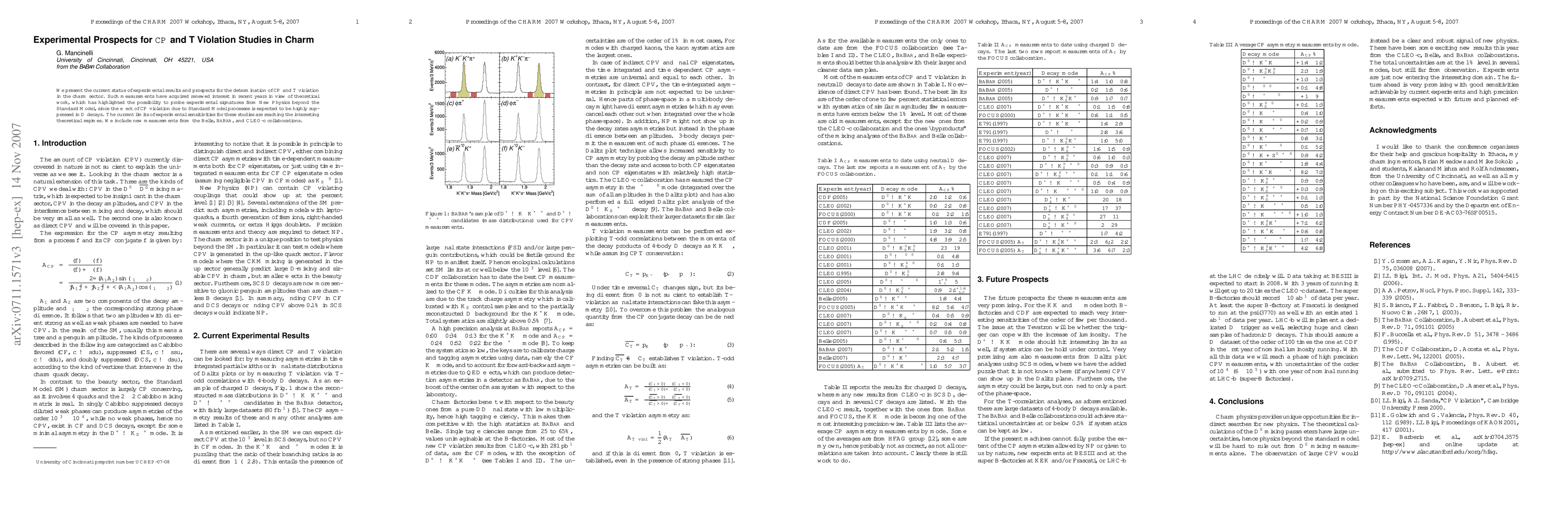 We present the current status of experimental results and prospects for the determination of CP and T violation in the charm sector. Such measurements have acquired renewed interest in recent years in view of theoretical work, which has highlighted the possibility to probe experimental signatures from New Physics beyond the Standard Model, since the effect of CP violation due to Standard Model processes is expected to be highly suppressed in D decays. The current limits of experimental sensitivities for these studies are reaching the interesting theoretical regimes. We include new measurements from the Belle, BABAR, and CLEO-c collaborations.