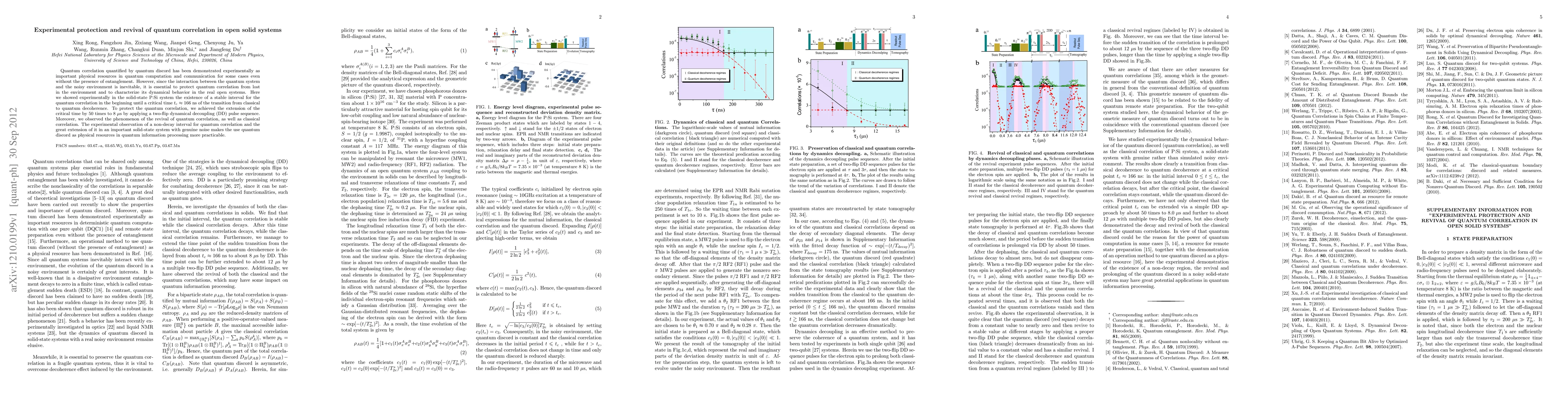Researchers experimentally demonstrated a stable interval for quantum correlation in a solid-state system, extending it 50 times through dynamic decoupling, and observed its revival along with classical correlation.