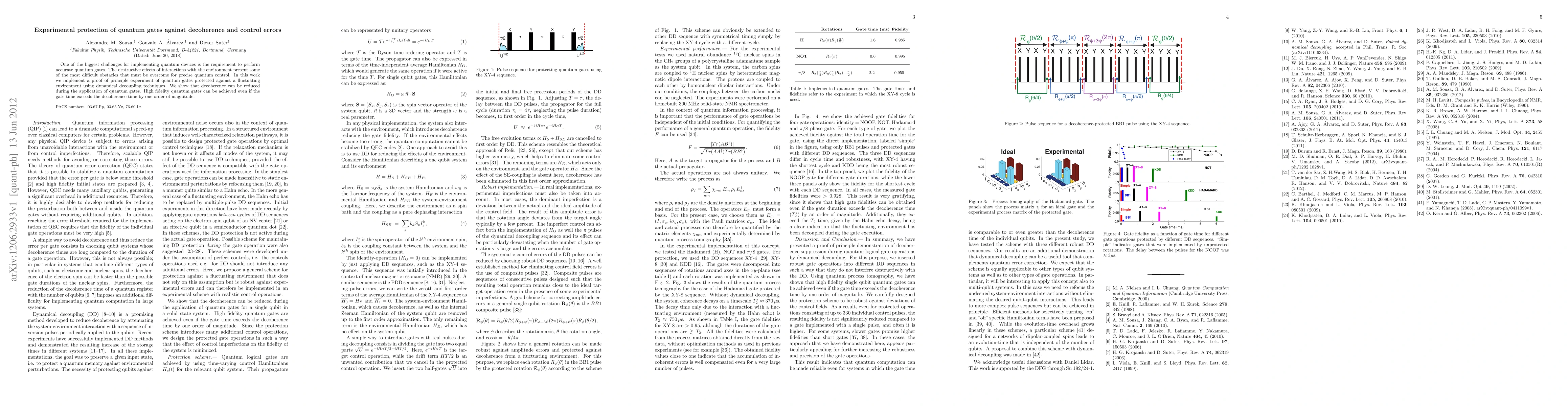 This paper presents an experimental demonstration of quantum gate protection using dynamical decoupling techniques to mitigate decoherence and control errors, achieving high fidelity gates even when the gate time is much longer than the decoherence time.
