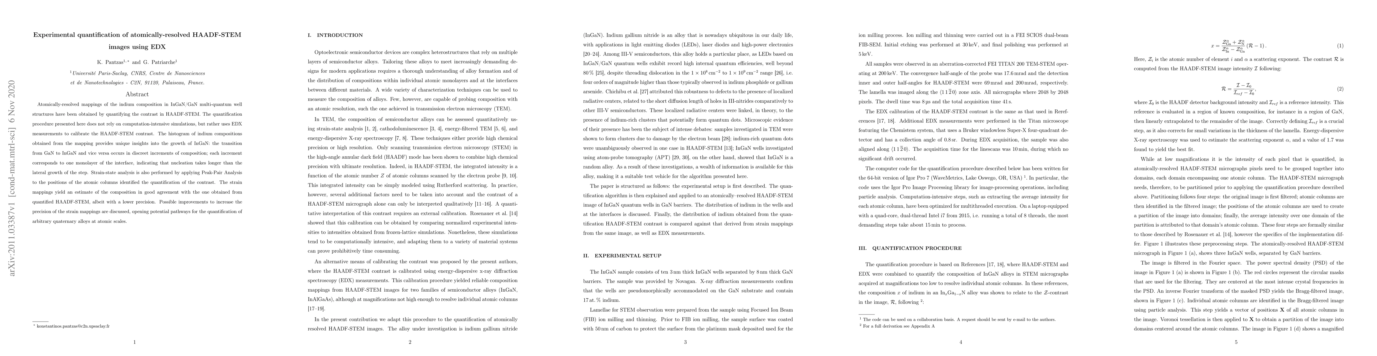 This paper presents a method for quantifying atomically-resolved HAADF-STEM images using EDX measurements, providing insights into the indium composition in InGaN/GaN multi-quantum well structures. The study reveals that the transition between GaN and InGaN occurs in discrete increments, indicating slower nucleation compared to lateral growth.