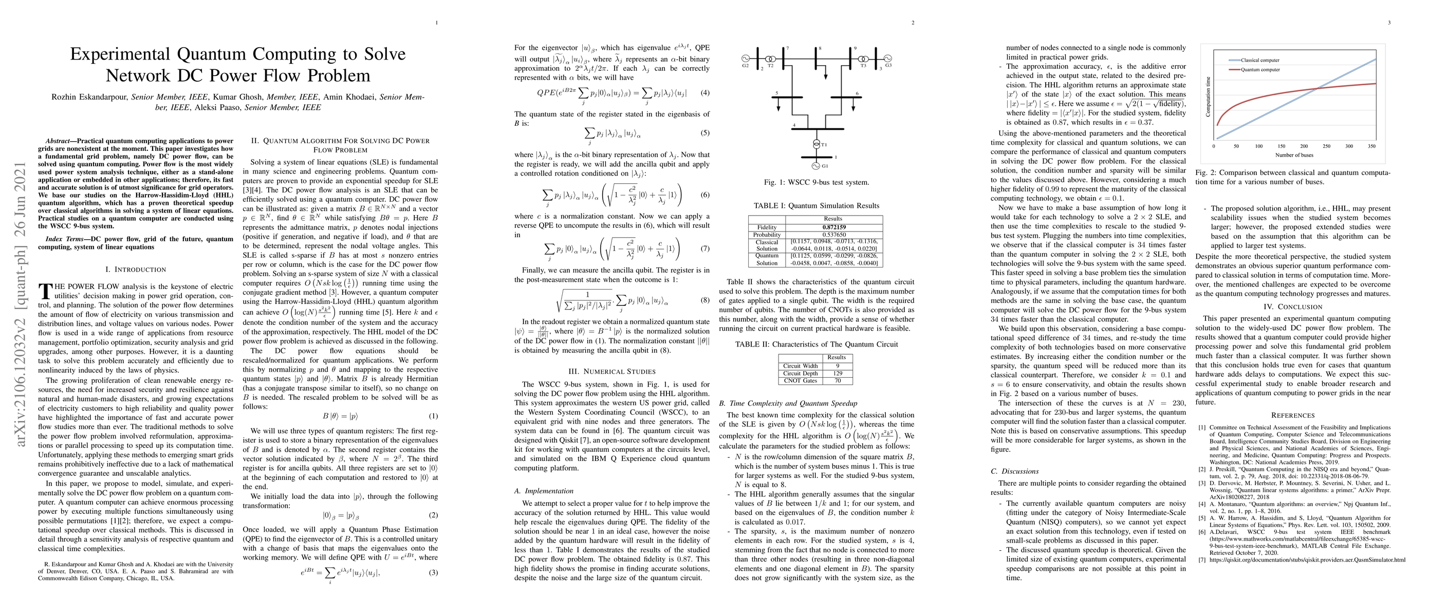 This paper explores the application of quantum computing, specifically the Harrow-Hassidim-Lloyd (HHL) algorithm, to solve the DC power flow problem in power grids, demonstrating potential speedup over classical methods using the WSCC 9-bus system. The study highlights the significance of fast and accurate power flow analysis for grid operators.