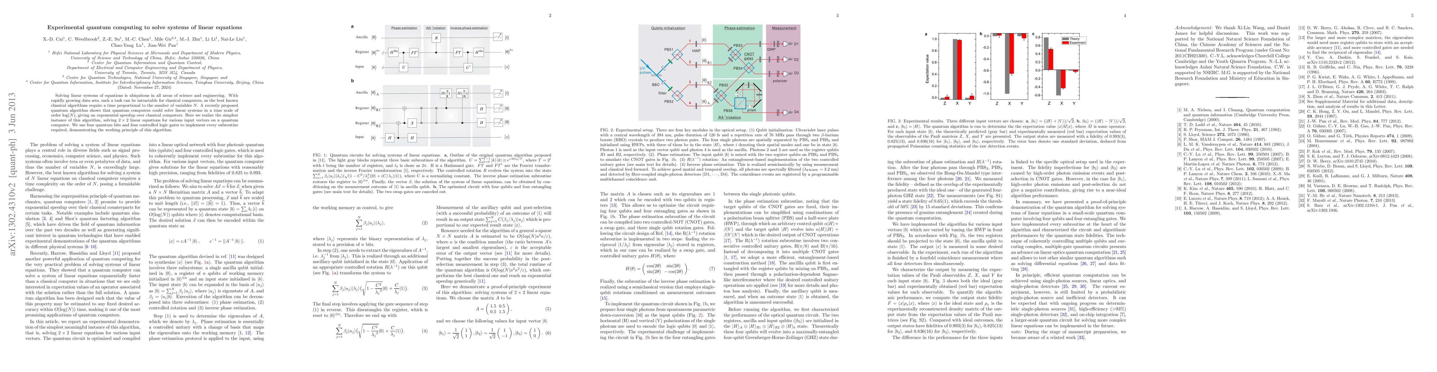 This paper demonstrates a quantum algorithm to solve 2x2 systems of linear equations using a quantum computer, achieving an exponential speedup compared to classical methods by leveraging quantum bits and controlled logic gates. The experiment validates the theoretical potential of quantum computing for linear algebra tasks.