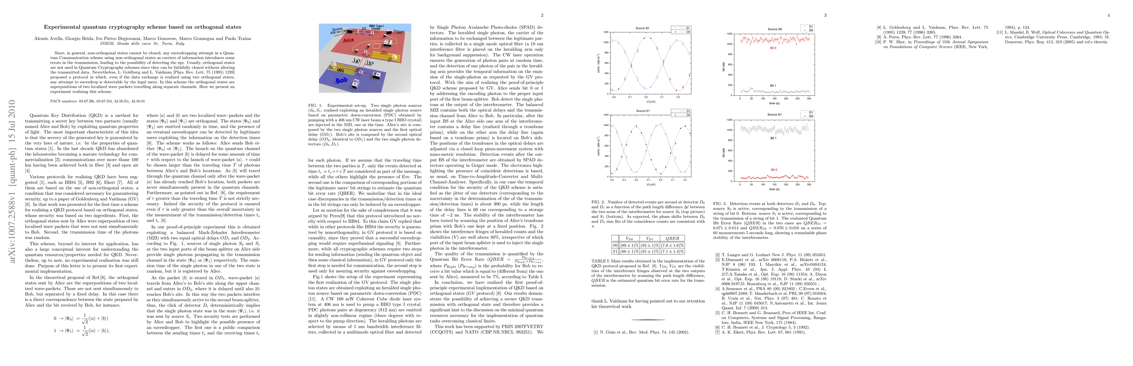 This paper presents an experimental quantum cryptography scheme utilizing orthogonal states to ensure secure communication. Unlike typical protocols, this scheme detects eavesdropping attempts by introducing errors, thereby safeguarding against unauthorized data interception.