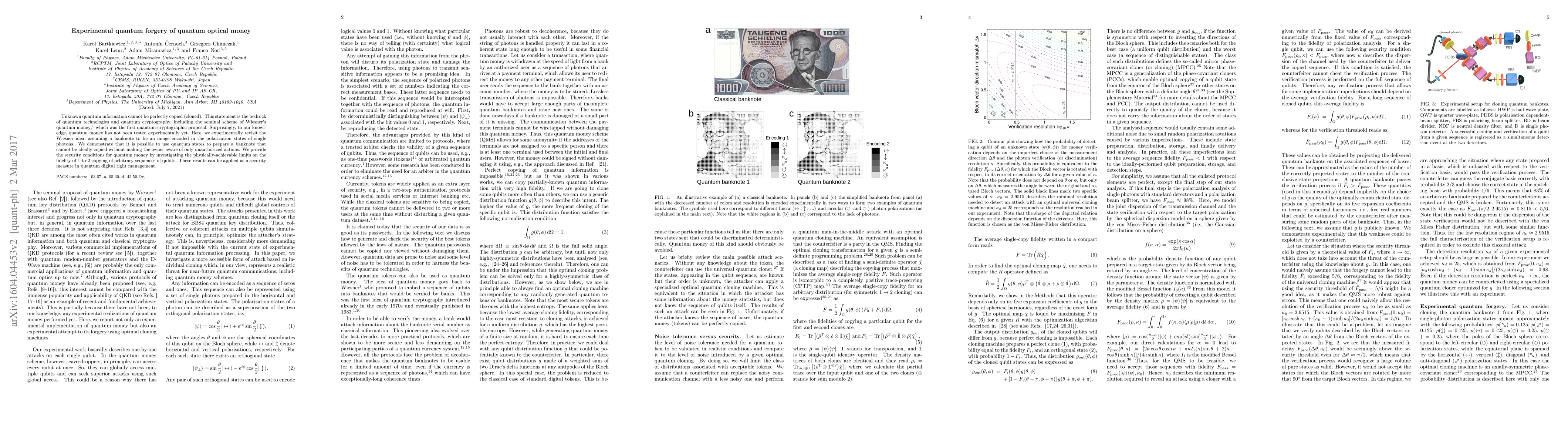 Unknown quantum information cannot be perfectly copied (cloned). This statement is the bedrock of quantum technologies and quantum cryptography, including the seminal scheme of Wiesner's quantum money, which was the first quantum-cryptographic proposal. Surprisingly, to our knowledge, quantum money has not been tested experimentally yet. Here, we experimentally revisit the Wiesner idea, assuming a banknote to be an image encoded in the polarization states of single photons. We demonstrate that it is possible to use quantum states to prepare a banknote that cannot be ideally copied without making the owner aware of only unauthorized actions. We provide the security conditions for quantum money by investigating the physically-achievable limits on the fidelity of 1-to-2 copying of arbitrary sequences of qubits. These results can be applied as a security measure in quantum digital right management.
