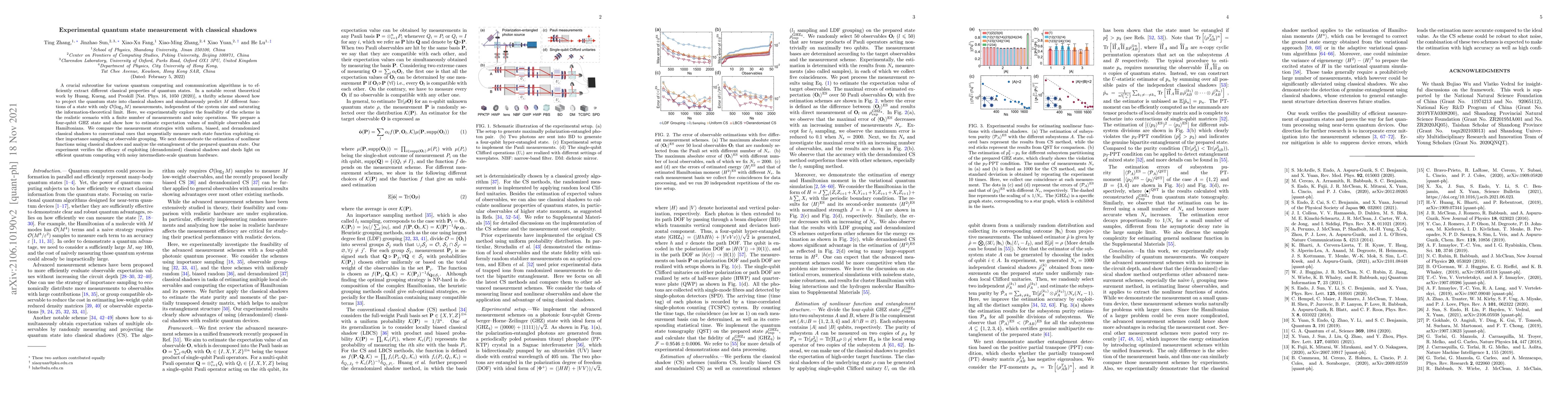 This paper experimentally investigates the feasibility of Huang, Kueng, and Preskill's theoretical scheme for extracting classical properties from quantum states using classical shadows, demonstrating its application on a four-qubit GHZ state and comparing it with conventional measurement methods. The results confirm the efficiency of classical shadows in noisy intermediate-scale quantum hardware.