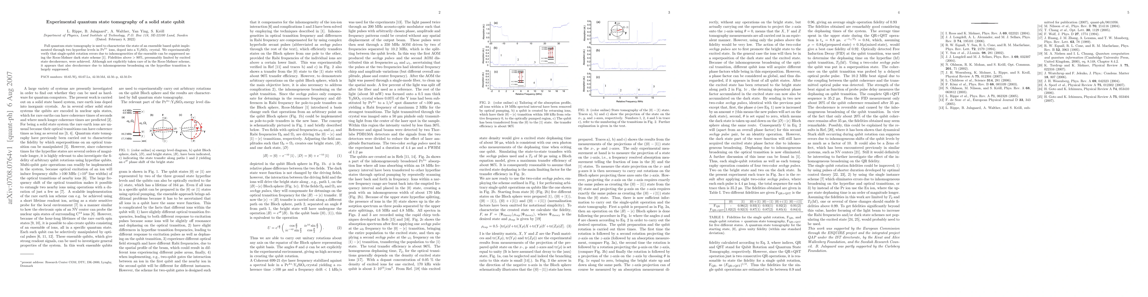 This paper presents an experimental quantum state tomography of a solid state qubit using Pr3+ ions in Y2SiO5, demonstrating high fidelity (>90%) through the Roos-Moelmer dark state scheme, which effectively suppresses single-qubit rotation errors and inhomogeneous broadening-induced decoherence.