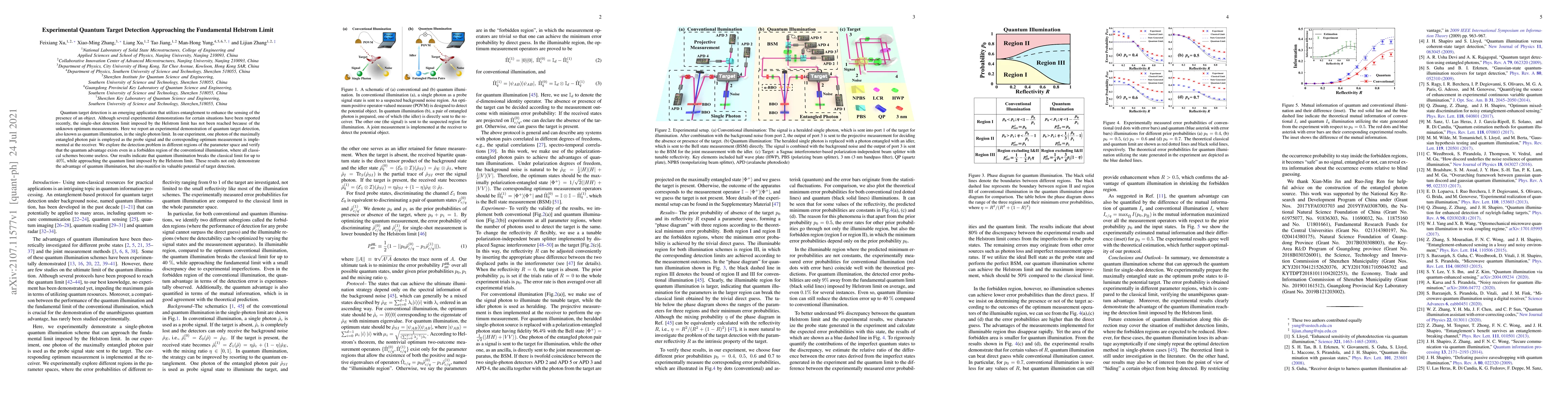 Quantum target detection is an emerging application that utilizes entanglement to enhance the sensing of the presence of an object. Although several experimental demonstrations for certain situations have been reported recently, the single-shot detection limit imposed by the Helstrom limit has not been reached because of the unknown optimum measurements. Here we report an experimental demonstration of quantum target detection, also known as quantum illumination, in the single-photon limit. In our experiment, one photon of the maximally entangled photon pair is employed as the probe signal and the corresponding optimum measurement is implemented at the receiver. We explore the detection problem in different regions of the parameter space and verify that the quantum advantage exists even in a forbidden region of the conventional illumination, where all classical schemes become useless. Our results indicate that quantum illumination breaks the classical limit for up to 40%, while approaching the quantum limit imposed by the Helstrom limit. These results not only demonstrate the advantage of quantum illumination, but also manifest its valuable potential of target detection.