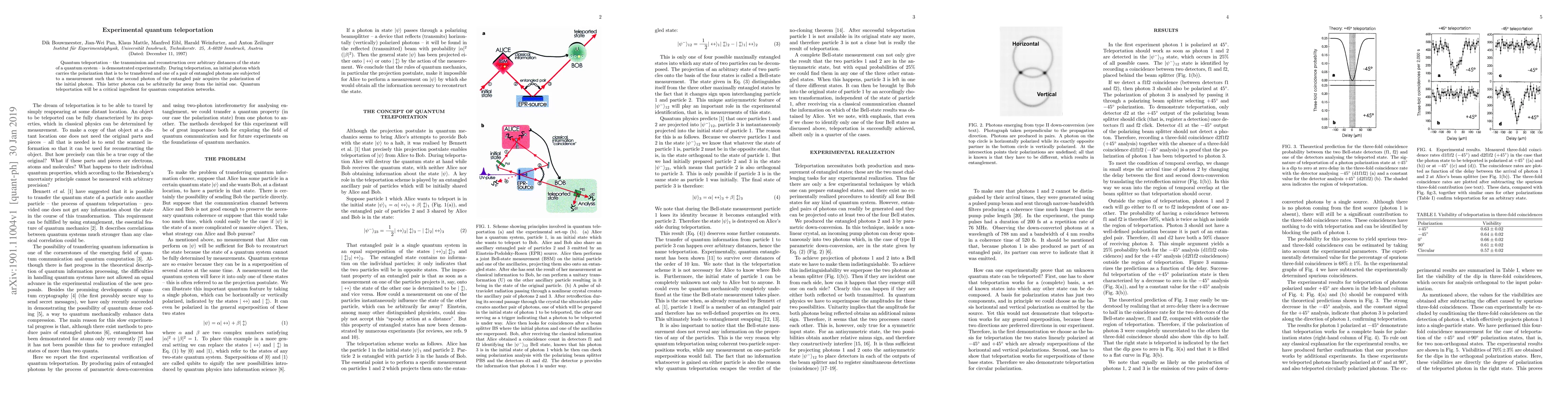 This paper demonstrates experimental quantum teleportation, successfully transmitting and reconstructing the state of a quantum system over long distances using entangled photons. This breakthrough is essential for developing quantum computation networks.