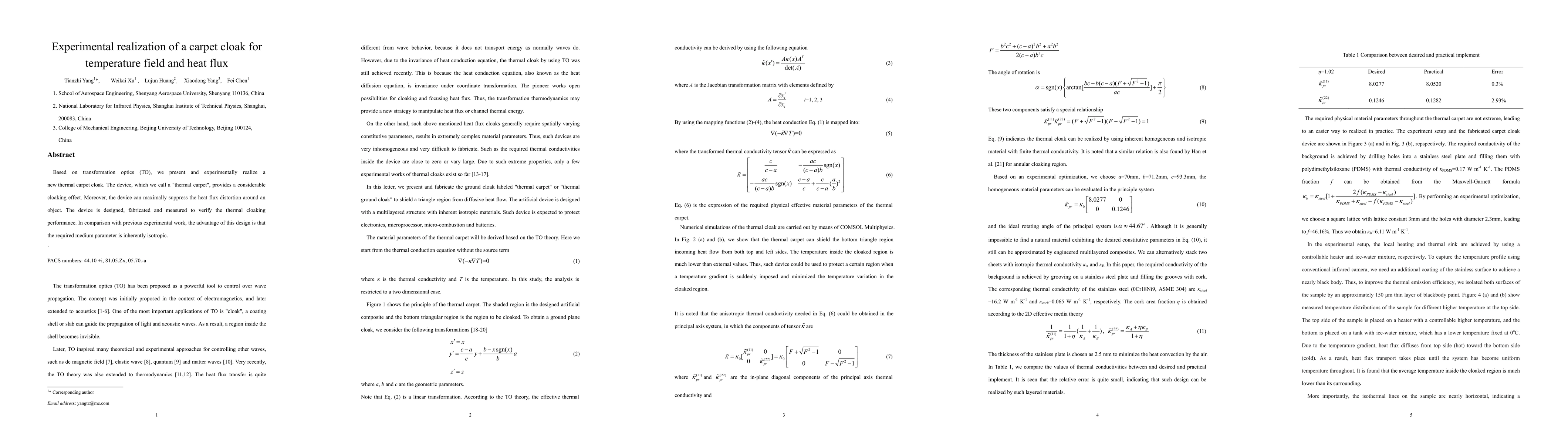 This paper presents the experimental realization of a thermal carpet cloak based on transformation optics, demonstrating effective cloaking of temperature fields and heat flux. Unlike previous designs, this isotropic medium simplifies fabrication, showcasing a significant advancement in thermal cloaking technology.