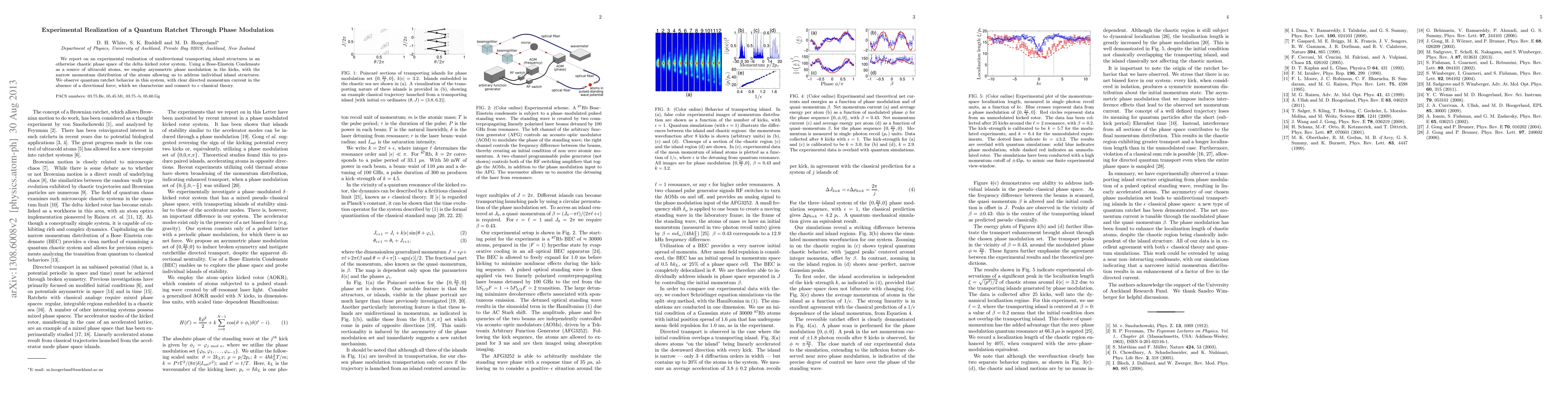 We report on an experimental realization of unidirectional transporting island structures in an otherwise chaotic phase space of the delta-kicked rotor system. Using a Bose-Einstein Condensate as a source of ultracold atoms, we employ asymmetric phase modulation in the kicks, with the narrow momentum distribution of the atoms allowing us to address individual island structures. We observe quantum ratchet behavior in this system, with clear directed momentum current in the absence of a directional force, which we characterize and connect to \epsilon-classical theory.