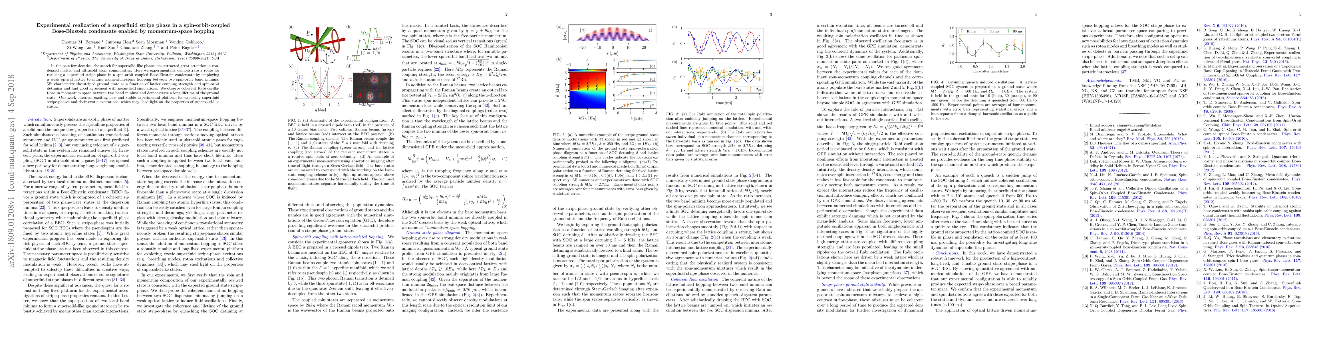 This paper experimentally realizes a superfluid stripe phase in a spin-orbit-coupled Bose-Einstein condensate using a weak optical lattice to induce momentum-space hopping. The study finds good agreement between experimental results and mean-field simulations, demonstrating coherent Rabi oscillations and a stable ground state.