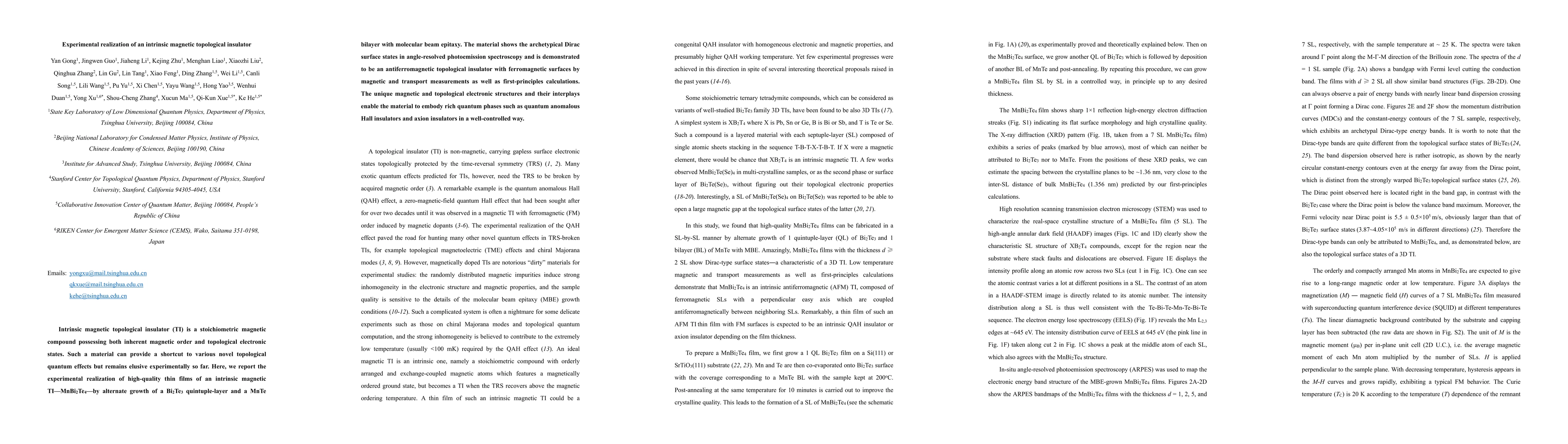 The paper reports the experimental realization of high-quality thin films of MnBi$_2$Te$_4$, an intrinsic magnetic topological insulator. It demonstrates the material's Dirac surface states and antiferromagnetic topological nature, highlighting its potential for novel topological quantum effects.