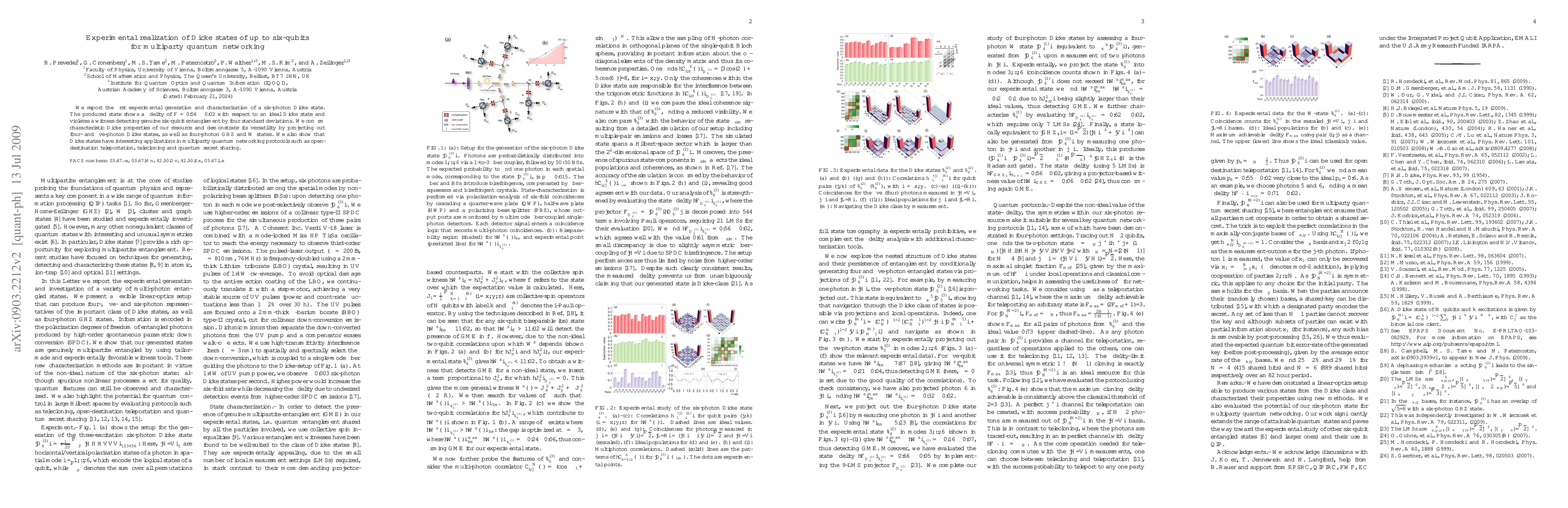 This paper reports the first experimental generation of a six-photon Dicke state with a fidelity of 0.56±0.02, demonstrating genuine six-qubit entanglement and projecting lower-photon Dicke and GHZ/W states. The study highlights the potential of Dicke states for multiparty quantum networking applications.
