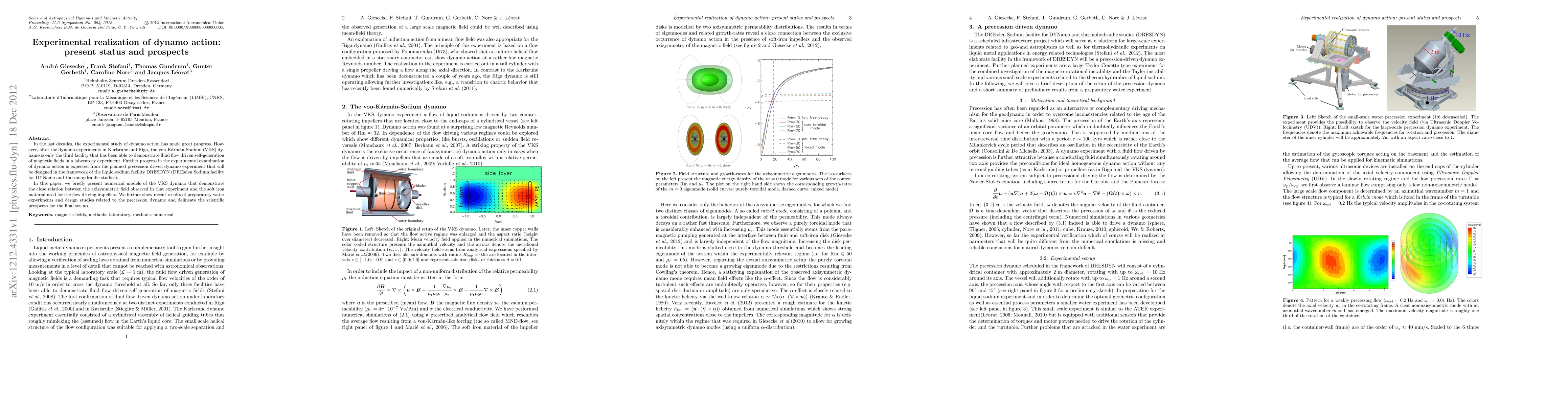 This paper reviews the progress in experimental dynamo action, highlighting the VKS dynamo's demonstration of magnetic field self-generation in fluid flow. It also outlines future prospects with the planned DRESDYN precession-driven dynamo experiment, including preliminary water experiments and design studies.