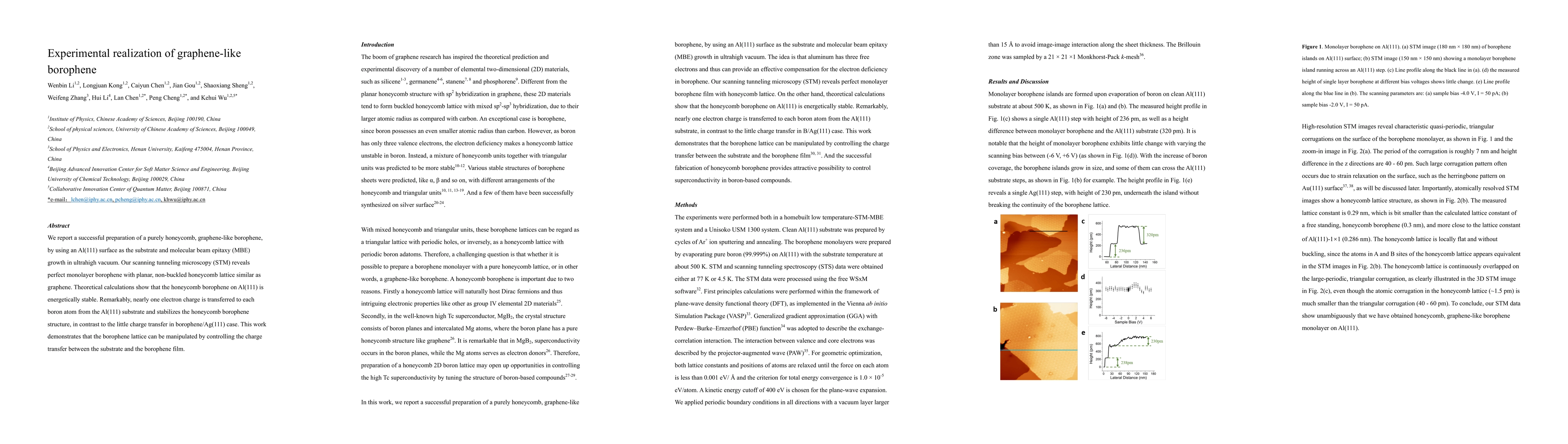 Researchers successfully fabricated graphene-like borophene on an Al(111) surface using molecular beam epitaxy. Scanning tunneling microscopy confirmed a perfect, non-buckled honeycomb lattice, indicating stability due to significant charge transfer from the aluminum substrate.