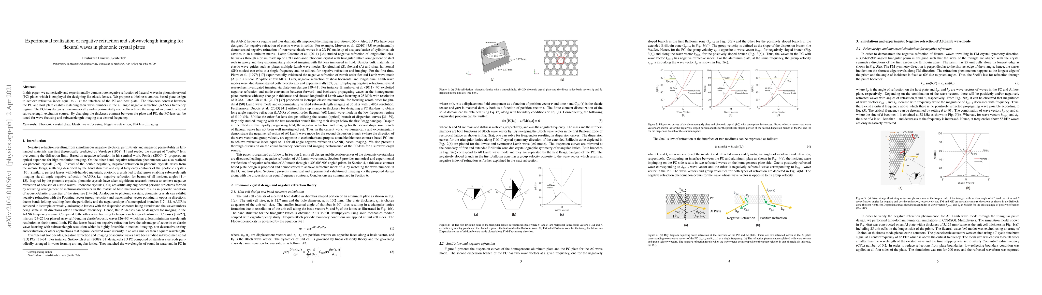 This paper demonstrates both numerically and experimentally the negative refraction of flexural waves in phononic crystal plates, enabling the design of flat elastic lenses. The study proposes a thickness contrast-based plate design to achieve a refractive index of -1, facilitating subwavelength imaging and wave focusing at desired frequencies.