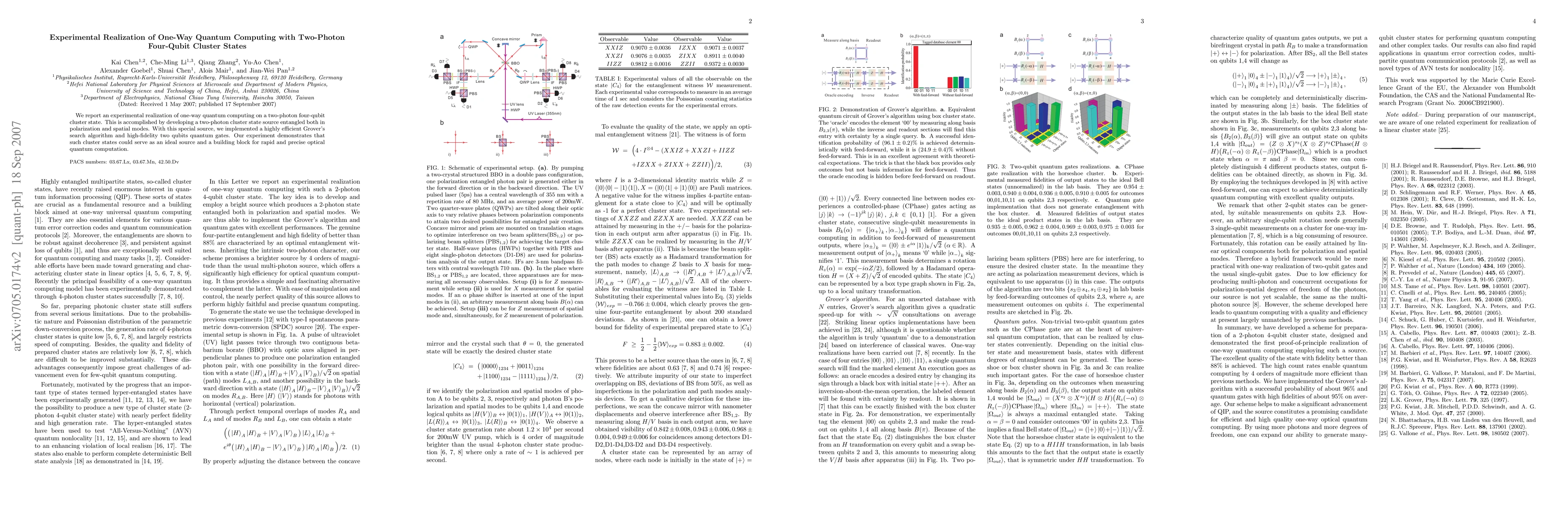 This paper reports the experimental realization of one-way quantum computing using a two-photon four-qubit cluster state, achieving efficient Grover's search and high-fidelity quantum gates, showcasing the potential of such cluster states for precise optical quantum computation.
