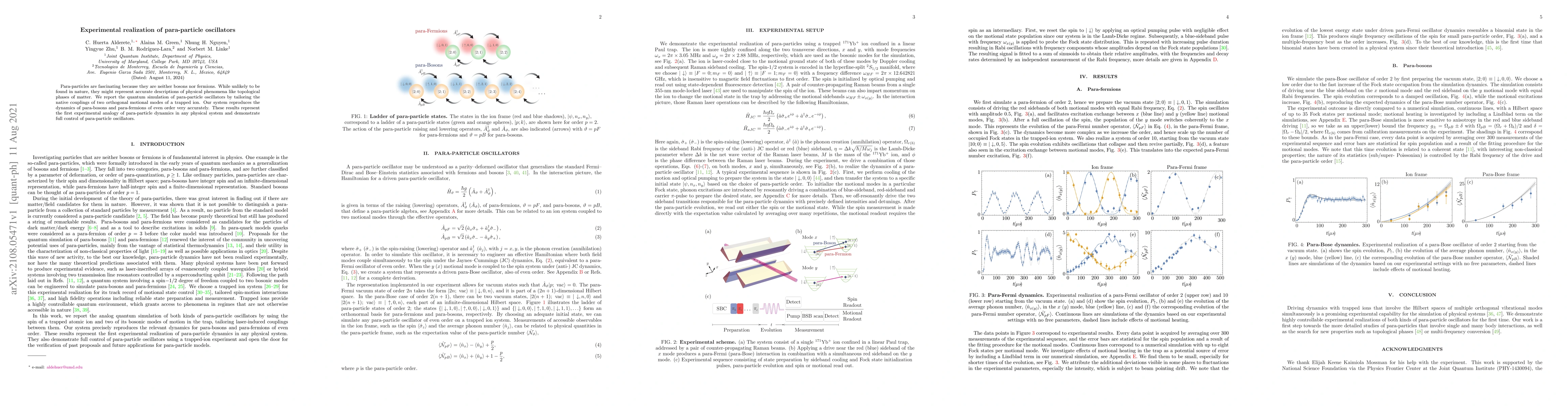 This paper reports the first experimental realization of para-particle oscillators through quantum simulation of a trapped ion system, accurately reproducing the dynamics of para-bosons and para-fermions. The study demonstrates full control over para-particle oscillators, offering insights into topological phases of matter.