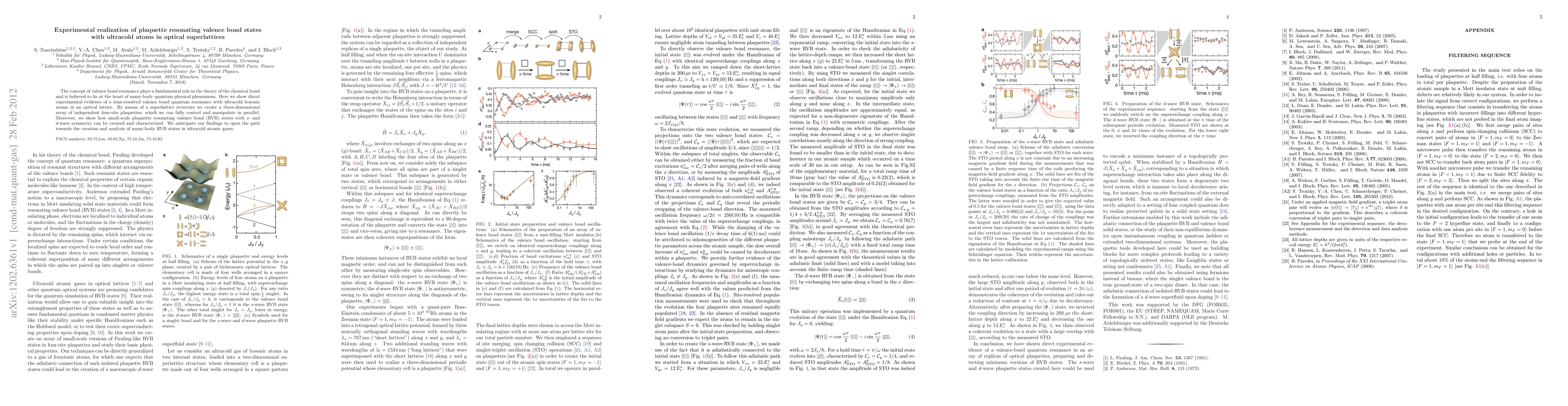 This paper demonstrates the experimental realization of plaquette resonating valence bond (RVB) states using ultracold bosonic atoms in optical superlattices, providing direct evidence of time-resolved valence bond quantum resonance. The study creates and manipulates a three-dimensional array of four-site plaquettes, showcasing the formation of small-scale RVB states with s- and d-wave symmetry.