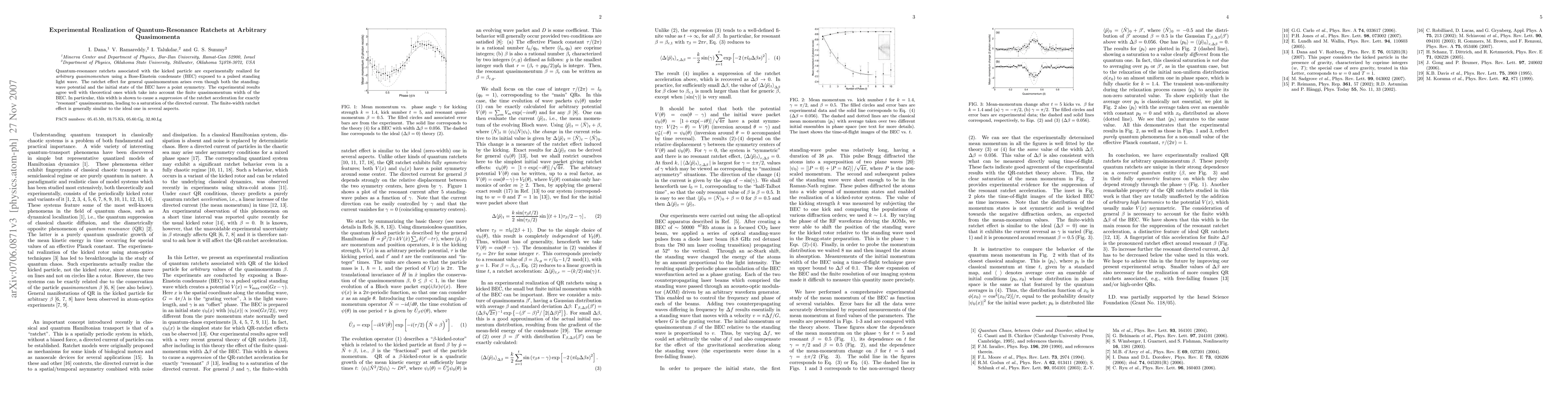 Quantum-resonance ratchets associated with the periodically kicked particle are experimentally realized for the first time. This is achieved by using a Bose-Einstein condensate exposed to a pulsed standing light wave and prepared in an initial state differing from the usual plane wave. Both the standing-wave potential and the initial state have a point symmetry around some center and the ratchet arises from the non-coincidence of the two centers. The dependence of the directed quantum transport on the quasimomentum is studied. A detailed theoretical analysis is used to explain the experimental results.