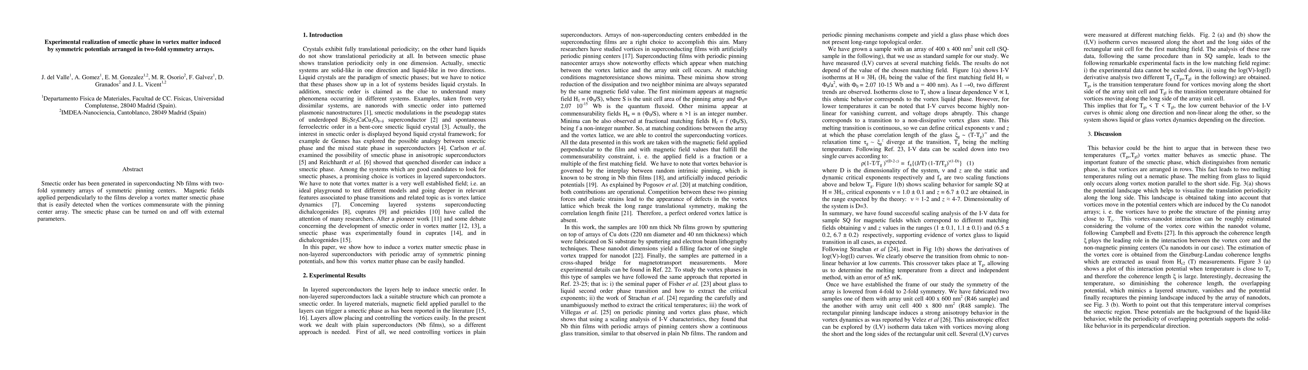 Smectic order has been generated in superconducting Nb films with two-fold symmetry arrays of symmetric pinning centers. Magnetic fields applied perpendicularly to the films develop a vortex matter smectic phase that is easily detected when the vortices commensurate with the pinning center array. The smectic phase can be turned on and off with external parameters.