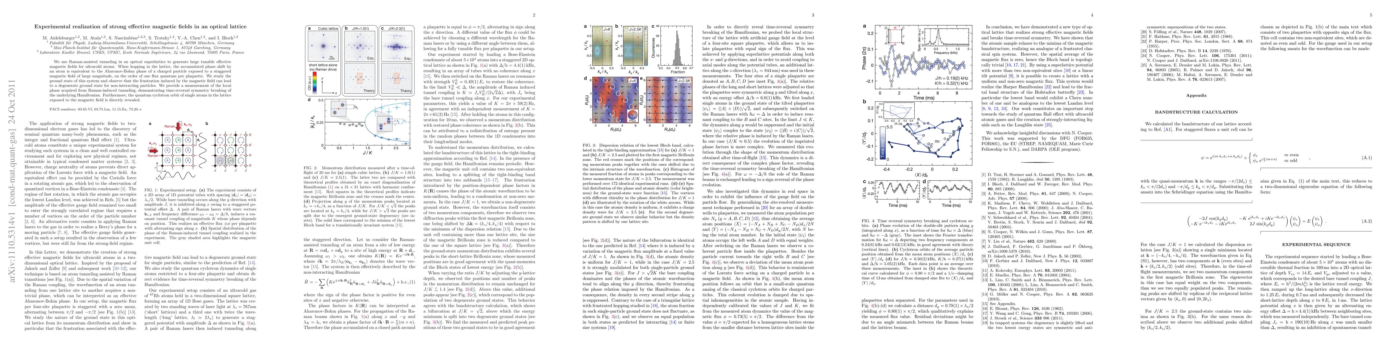 This paper demonstrates the generation of strong, tunable effective magnetic fields in an optical lattice using Raman-assisted tunneling, revealing the quantum cyclotron orbit of atoms and showing time-reversal symmetry breaking, while also highlighting the potential for degenerate ground states due to magnetic field-induced frustration.