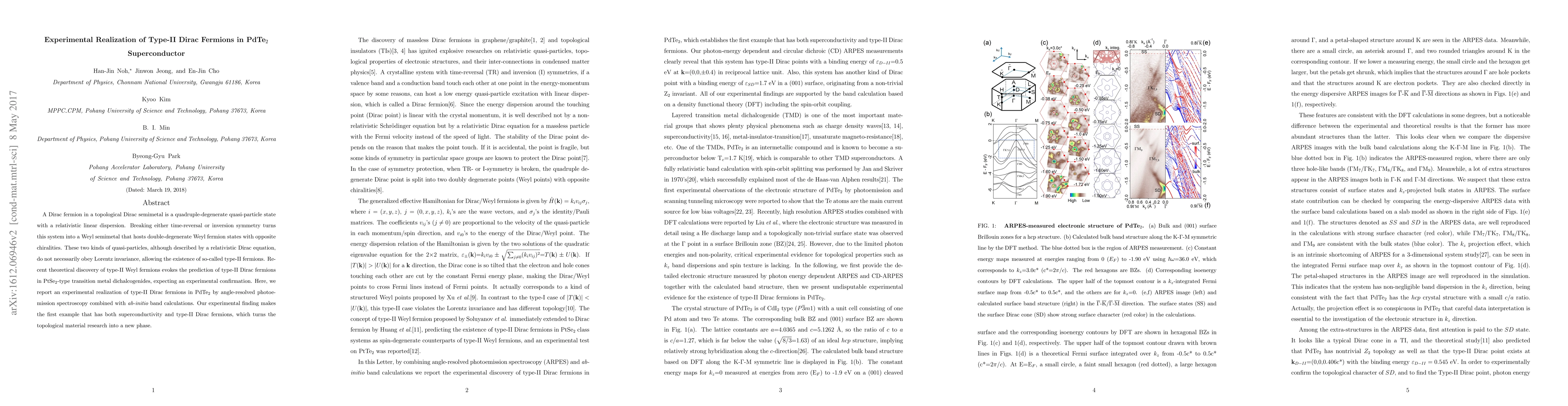 Researchers experimentally realize type-II Dirac fermions in the superconductor PdTe$_2$ using angle-resolved photoemission spectroscopy, confirming the theoretical prediction and marking a significant advancement in topological material research.